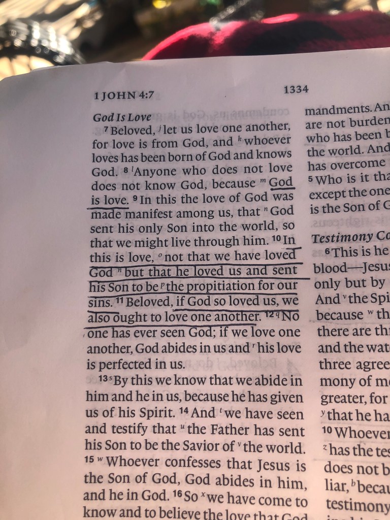 “In this is love, not that we have loved God but that HE loved us and sent His Son to be the propitiation for OUR sins. Beloved, if God so loved us, we also ought to love one another.” – I John 4:10-11