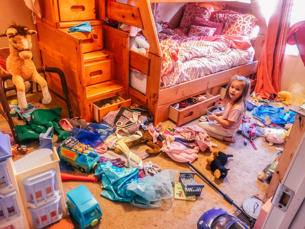 For starters, she is completely blessed with way too many toys but guess what? You guessed it, she wants more. She had made a mess. Her room was total chaos. Browder walked in and was tripping over everything. He would cry every time he fell down. Raelyn started crying when she realized the mess she made and was responsible for picking up her own mess. She was overwhelmed. She started giving me every reason why she could not pick up on her own. But, “oh you love cleaning” I said. “I didn’t mean it” she said. I had to laugh when she said, “I don’t know how to pick up”. She had no problem figuring out how to pull everything out of her drawers. Why could she not figure out how to put it back in her drawers?